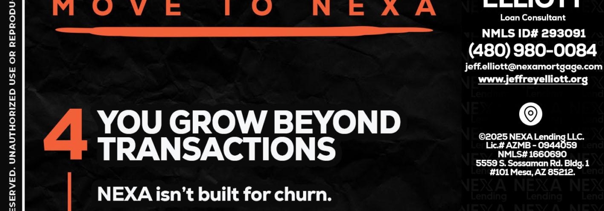 Hi, my name is Jeffrey L. Elliott. I’m a Loan Officer with NEXA Lending LLC., offering personalized mortgage solutions, fast customized quotes, great rates and service with integrity.