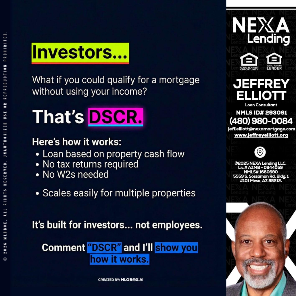 Hi, my name is Jeffrey L. Elliott. I’m a Loan Officer with NEXA Lending LLC., offering personalized mortgage solutions, fast customized quotes, great rates and service with integrity.