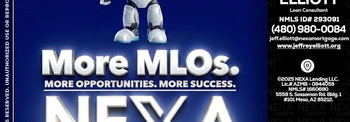 Hi, my name is Jeffrey L. Elliott. I’m a Loan Officer with NEXA Lending LLC., offering personalized mortgage solutions, fast customized quotes, great rates and service with integrity.