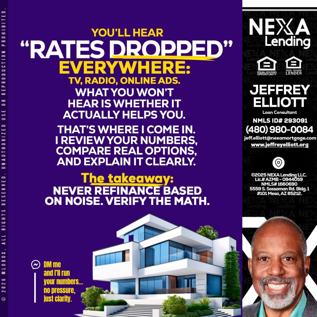 Hi, my name is Jeffrey L. Elliott. I’m a Loan Officer with NEXA Lending LLC., offering personalized mortgage solutions, fast customized quotes, great rates and service with integrity.