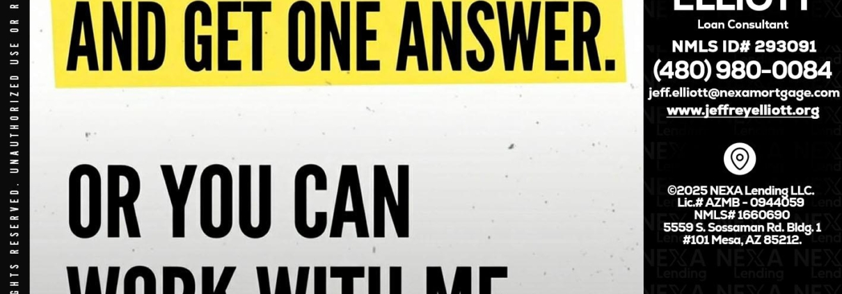 Hi, my name is Jeffrey L. Elliott. I’m a Loan Officer with NEXA Lending LLC., offering personalized mortgage solutions, fast customized quotes, great rates and service with integrity.