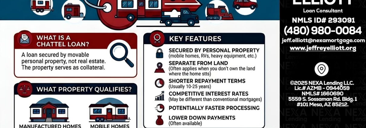 Hi, my name is Jeffrey L. Elliott. I’m a Loan Officer offering personalized mortgage solutions, fast customized quotes, great rates and service with integrity. If you’re interested in learning more about the Chattel loan or any other, just let me know and I’ll walk you through your options.