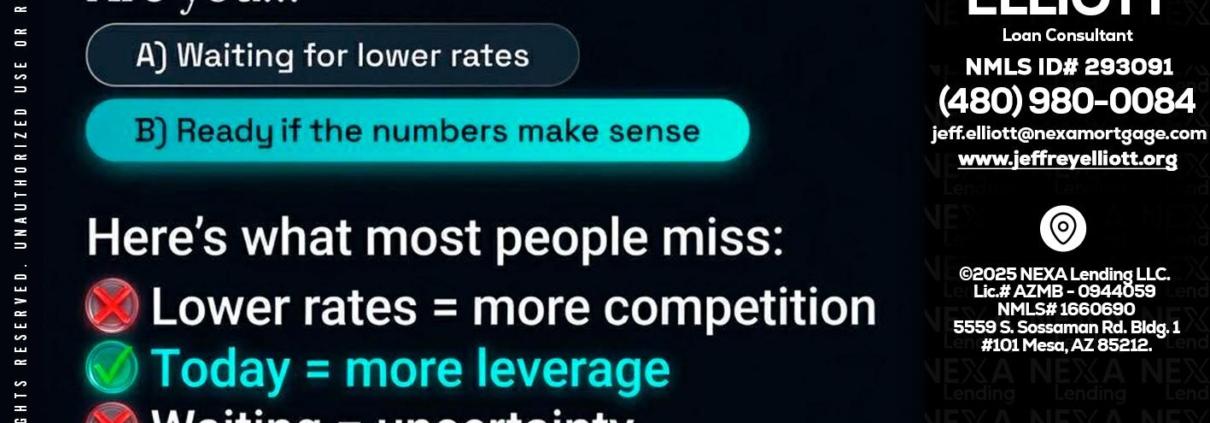 Hi, my name is Jeffrey L. Elliott. I’m a Loan Officer with NEXA Lending LLC., offering personalized mortgage solutions, fast customized quotes, great rates and service with integrity.