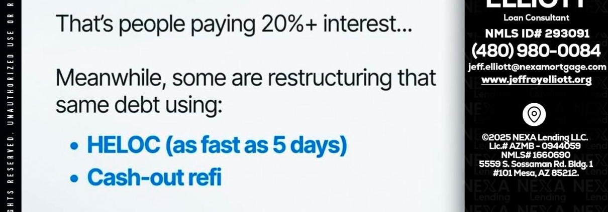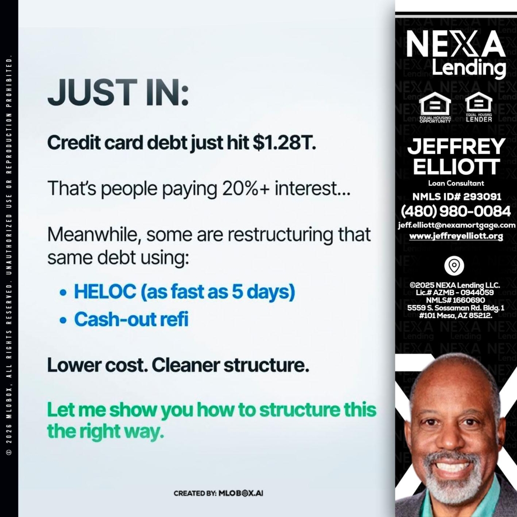 Hi, my name is Jeffrey L. Elliott. I’m a Loan Officer with NEXA Lending LLC., offering personalized mortgage solutions, fast customized quotes, great rates and service with integrity.