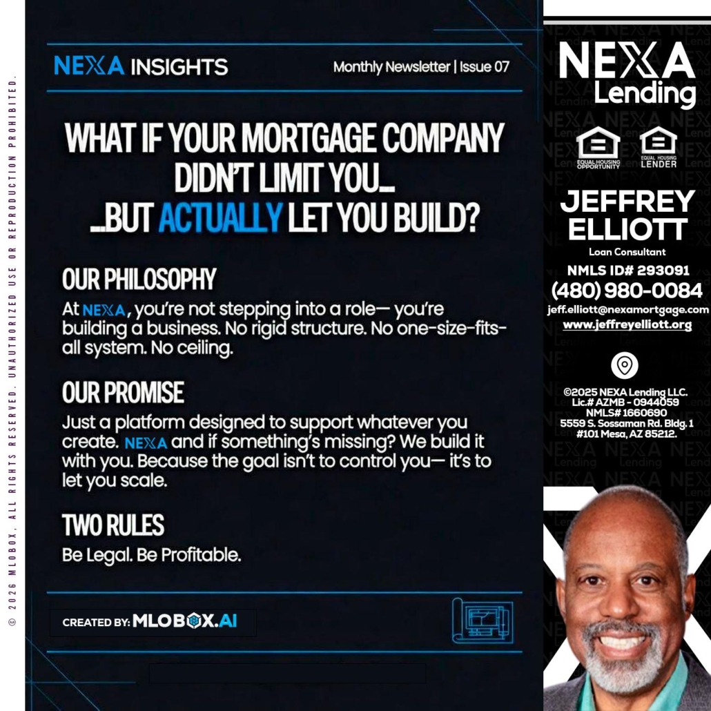 Hi, my name is Jeffrey L. Elliott. I’m a Loan Officer with NEXA Lending LLC., offering personalized mortgage solutions, fast customized quotes, great rates and service with integrity.
