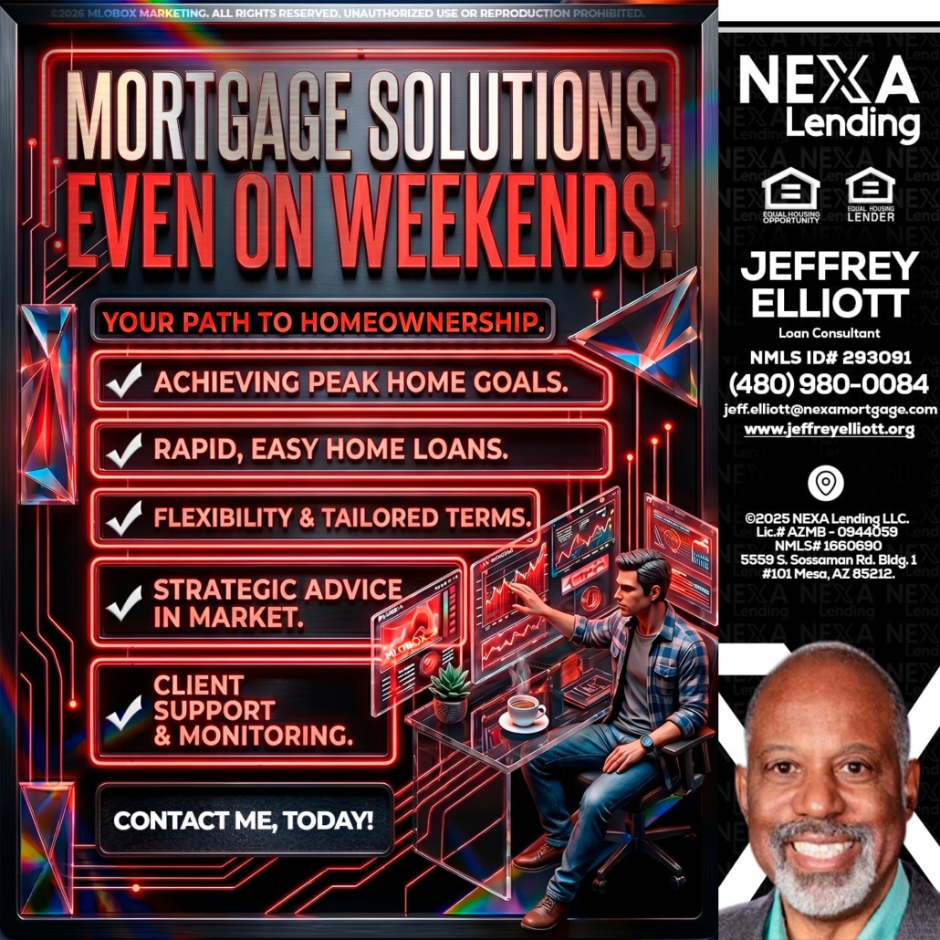 Hi, my name is Jeffrey L. Elliott. I’m a Loan Officer with NEXA Lending LLC., offering personalized mortgage solutions, fast customized quotes, great rates and service with integrity.