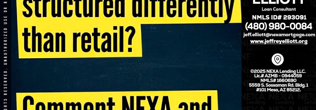 Hi, my name is Jeffrey L. Elliott. I’m a Loan Officer with NEXA Lending LLC., offering personalized mortgage solutions, fast customized quotes, great rates and service with integrity.